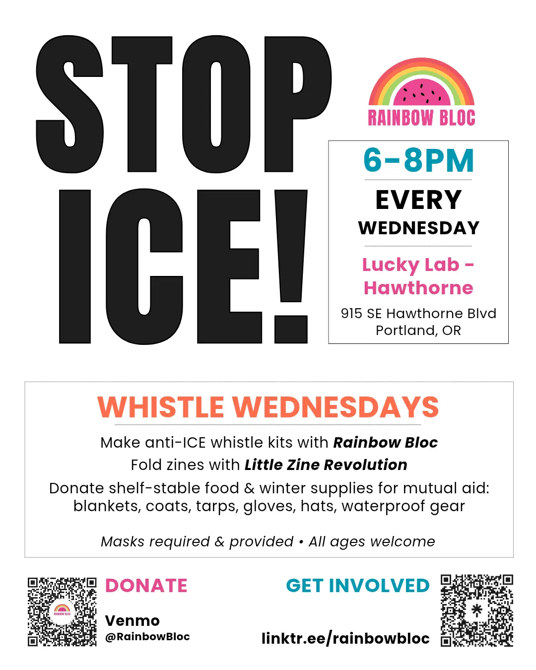 Make anti-ICE whistle kits with Rainbow Bloc